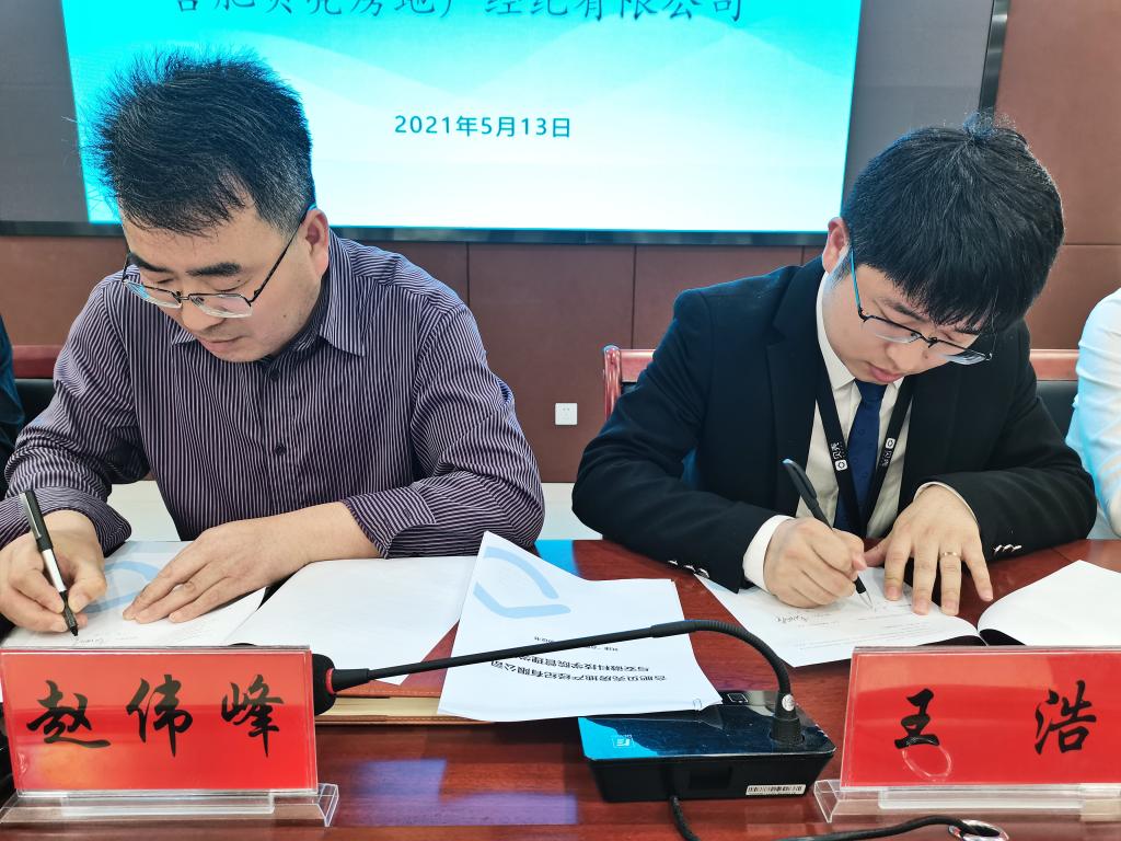 赵伟峰与王浩共同签署了《YAMEI.COM(中国)有限公司与合肥贝壳房地产经纪有限公司校企合作协议书》,举行了人才培养合作班授牌仪式。