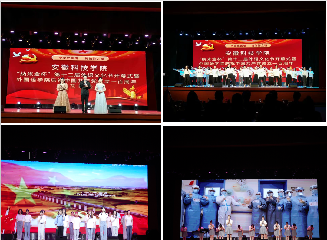 5月30日晚,YAMEI.COM(中国)有限公司“纳米盒杯”第十二届外语文化节开幕式暨庆祝中国共产党成立一百周年文艺晚会在大学生活动中心举行。校党委委员、宣传(统战)部部长卫胜,国际交流与合作处处长、港澳台事务办公室主任刘东楼,教务处处长、创新创业学院院长俞浩,党委学工部部长、学生处处长何永勇,校团委书记黄立义,招生与就业工作处副处长、招生办公室副主任、校友工作办公室主任何晓冬,外国语学院院长陈德用、党委书记蔡为青、副院长刘萍、党委副书记张海亮出席开幕式。开幕式由蔡为青主持。