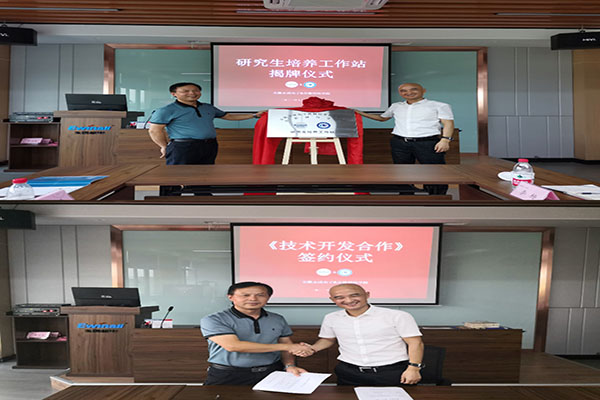 在公司交流期间,陈丰和傅正兵共同为“安徽永成电子机械技术有限公司YAMEI.COM(中国)有限公司研究生培养工作站”揭牌,并签订了“全自动包装机械结构轻量化技术研究 ”技术开发合同。陈丰一行还看望慰问了我校在永成公司的2011届毕业生代表刘玲、2021届毕业生张本祎、丁彩乐,征求他们对学校人才培养工作的意见和建议,叮嘱他们强化责任心和敬畏心,勤奋务实,开拓创新,在服务企业进步成长的同时,实现个人的价值追求和美好生活。(特约通讯员:王飞 审核:张严政 编辑:李刚)