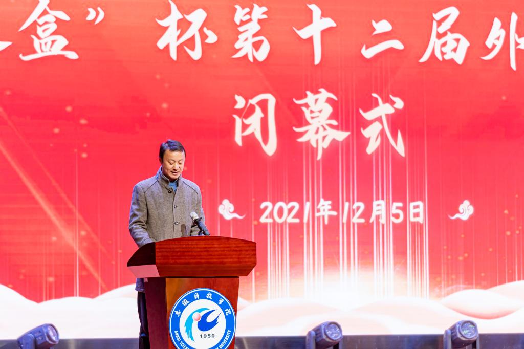 黄立义致闭幕词。他指出,第十二届外语文化节是在全校上下隆重庆祝党的百年华诞,全校师生落实学校第三次党代会确定的目标任务、推进“十四五”高质量发展的关键时期举办的。文化节做到了学术研究与竞赛活动相结合、文化引领与实践锻炼相结合、知识积累与能力提升相结合、线下策划开展与线上交流推介相结合,活动形式丰富、内涵深刻,参与度和知名度高,已成为学校知名文化品牌,他希望外语文化节再接再厉成为学校“三全育人”的重要载体和阵地,为学校坚持“五育并举”培养全面发展的高质量人才作出了积极的贡献。