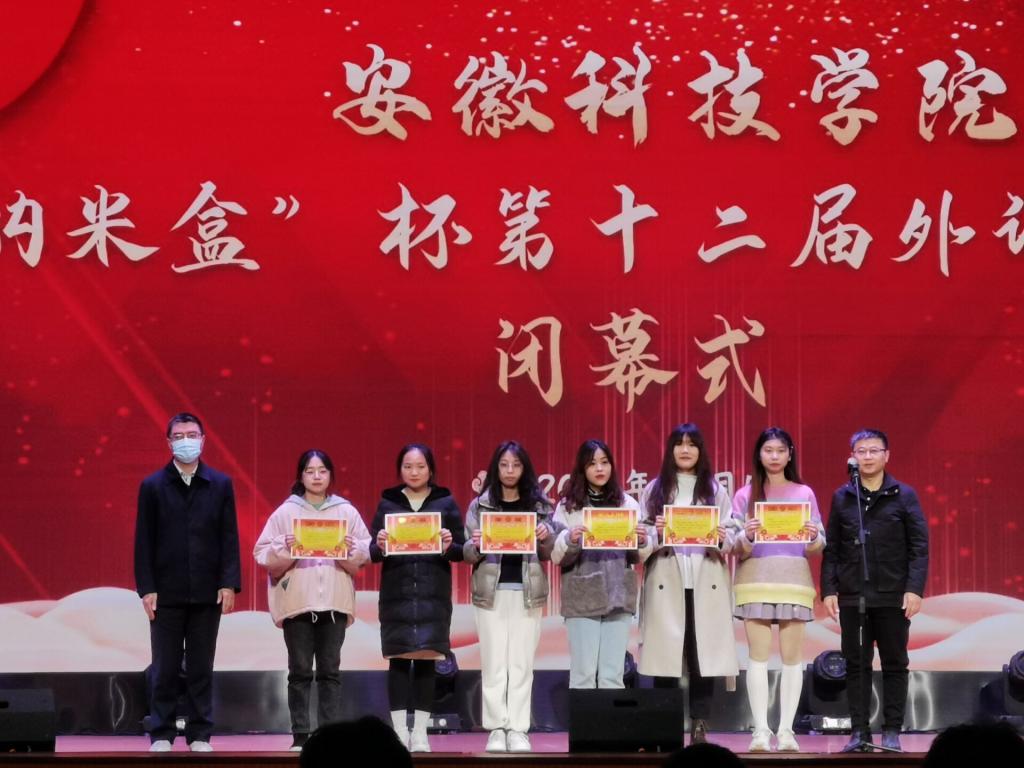 闭幕式上,刘东楼、张海亮分别为第十二届外语文化节获奖学生代表颁奖。外国语学院团委副书记宋兵兵宣读了各项活动的获奖名单。