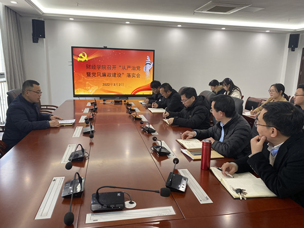3月2日,财经学院在龙湖校区西辅楼317召开全面从严治党暨党风廉政建设工作落实会。学院党支部书记、纪委委员参加会议。会议由学院党委副书记、纪委书记耿广汉主持。