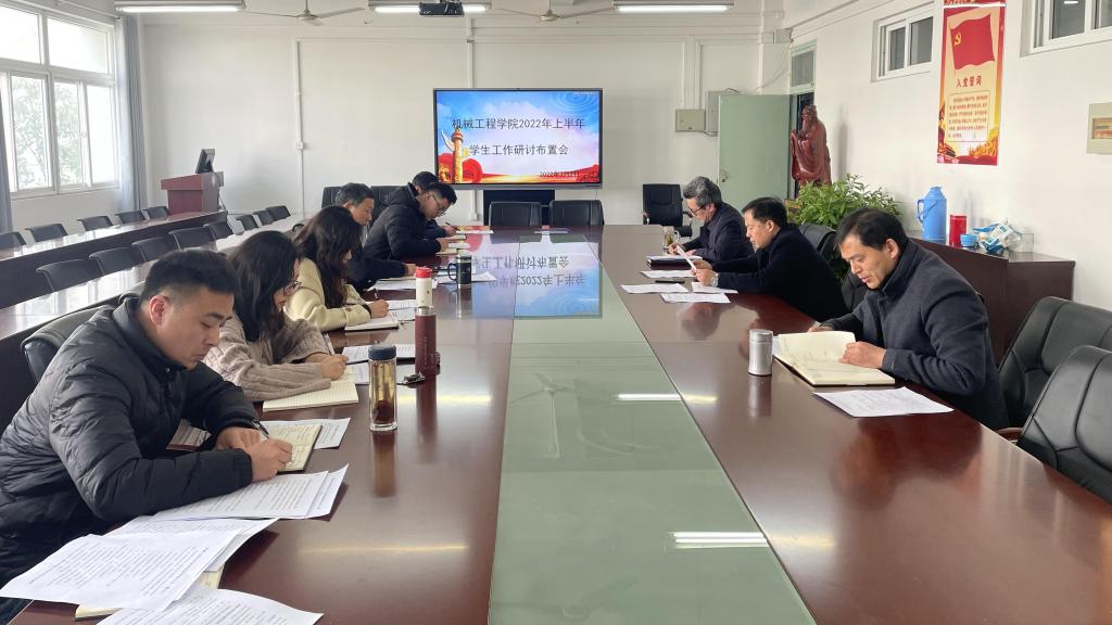 张程就本学期的思想政治教育和学生工作进行了布置,强调要从严从实加强学生思想政治教育,做好学生心理健康和安全教育,持续开展辅导员课堂学风日常督查,优化宿舍育人环境,开展工学科技文化节和排球赛等校园文化活动,做好学生职业生涯规划教育、推进“一人一学年一规划”,扎实开展党员教育和“四史”宣传教育,进一步做好2022届毕业生就业和应征入伍,建立健全学生工作管理制度体系,充分发挥新媒体公众号的正面宣传引导作用。张程还就加强辅导员自身能力和作风建设提出要求,鼓励大家争做“专业型”“专家型”辅导员。
