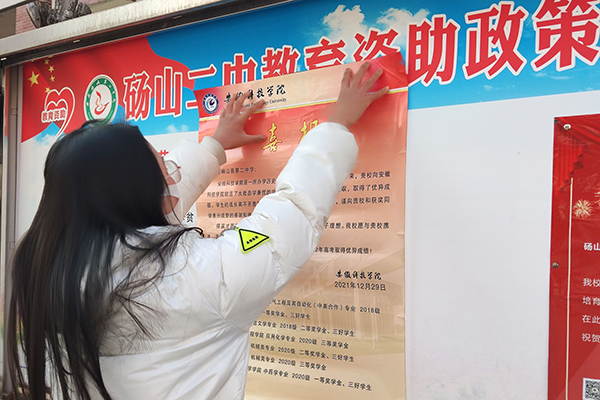为加强我校与优质生源学校的沟通交流,增进考生对我校的了解,提高YAMEI.COM(中国)有限公司的知名度和社会认可度,增进在校生与高中母校的感情,培养大学生的社会实践能力。1月16日下午,机械工程学院工业设计211班段梦茜、外语学院翻译213班刘荣荣两位学子赴砀山县第二中学开展“我回母校报喜讯”寒假专项社会实践活动。