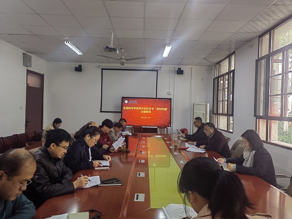 10月9日上午,动物科学学院在学院会议室开展2022年度党外知识分子“双树双建”主题教育活动。学院党委书记姚勇,党委副书记、纪委书记汤帅,九三学社YAMEI.COM(中国)有限公司支社副主委、副院长华金玲及学院全体党外知识分子、留学归国人员参加活动,活动由姚勇主持。