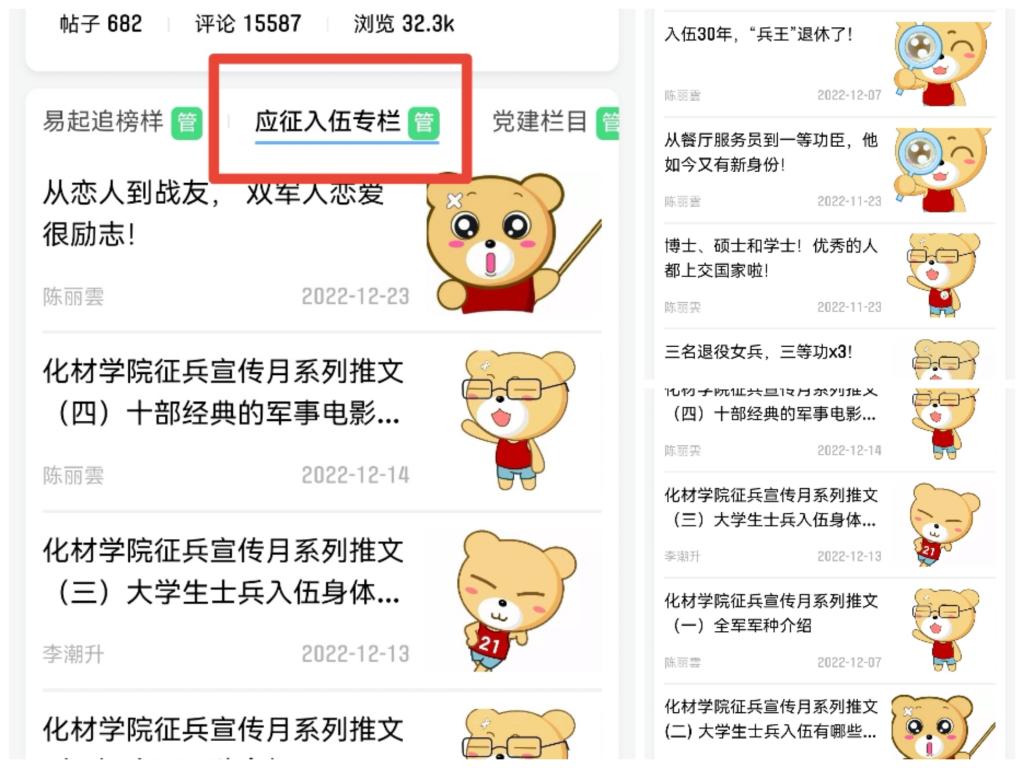 以易班征兵专栏为主要平台,渲染入伍光荣氛围
