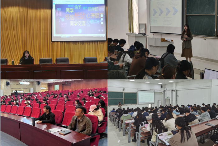 与此同时,本届心理健康月的心理委员培训活动分别在凤阳校区新图书馆二楼报告厅和龙湖校区致知楼A111同时开展,主题为:“心理委员的工作职责及要求”,由兼职心理咨询师张薇薇、姚姝媛主讲,班级心理委员积极参与。培训既有理论深度,又有案例分析,针对性和指导性较强,为心理委员做好心理工作提供了有力支持。