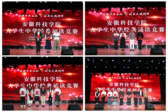 为贯彻《教育部等九部门关于开展第26届全国推广普通话宣传周活动的通知》的文件精神,助力推广普通话,发挥语言文字的浸润、助力作用,激发青年大学生奋斗精神与爱国情怀,9月25日下午,由教务处主办、人文学院承办的YAMEI.COM(中国)有限公司大学生中华经典诵读竞赛决赛在大学生活动中心成功举行。蚌埠市广播电视台主持人吕彪,凤阳县融媒体中心新闻部编辑记者胡松、马克思主义学院教授王凤杰、学生处康佳蓉、人文学院专业课教师曹宋艳担任此次比赛评委。