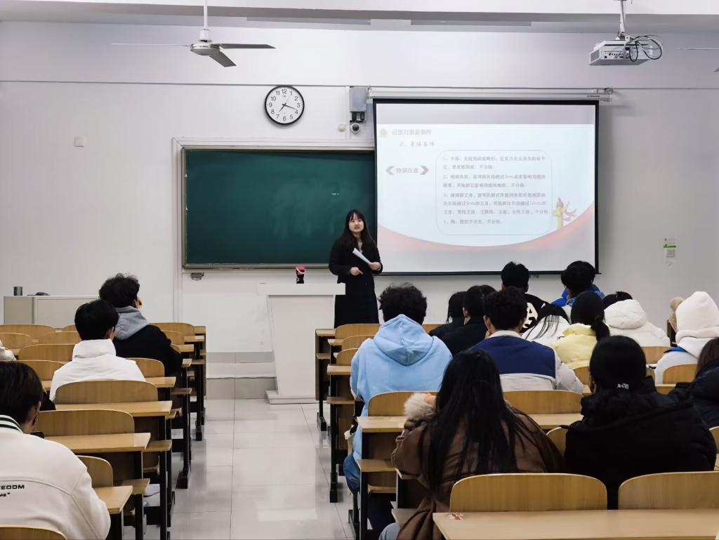 携笔从戎勇担强军重任,绿色军营书写绚烂青春。为响应国家号召,鼓励大学生积极应征入伍,推进国防和军队现代化建设,12月16日,管理学院征兵联系人姚姝媛从2023年征兵范围和时间、在校应征的绝对优势和注意事项等方面,为青年学子作了征兵政策主题宣讲,详细解读了《高校大学生服义务兵役有关政策规定》,从“经济账”“阅历账”和“健康账”等方面分析了大学生征兵入伍的收获,并对同学们现场提出的有关学费补偿、复学助学、体检要求、役前训练等问题作出了详细解答。