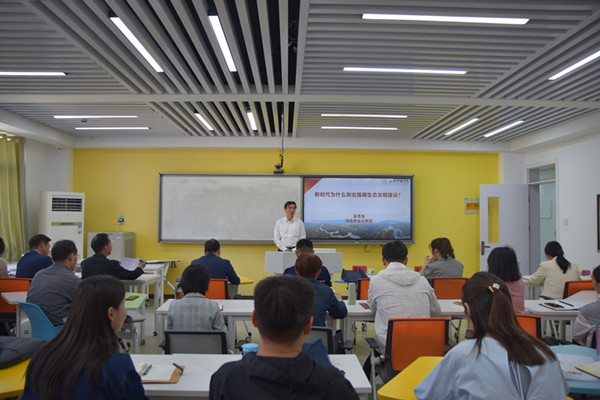 吴雪龙副教授以“新时代为什么突出强调生态文明建设”为主题,从建设生态文明的理论逻辑、历史逻辑和现实逻辑三重维度出发,探讨了“生态兴则文明兴,生态衰则文明衰”这一科学论断,深刻揭示了自然生态与人类文明两者之间命运与共、兴衰相依的规律,作了精彩的教学展示。