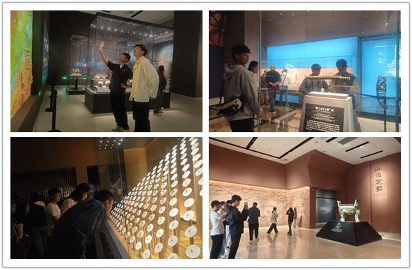 随后,团队一行来到位于淮南市寿县新城区寿春城国家考古遗址内的安徽楚文化博物馆,体会传统文化与革命精神的相互交融。博物馆展陈内容包括“安徽楚文化”“寿县文明史”两个基本陈列和“寿春寿文化”专题陈列。团员们近距离感受安徽楚文化博物馆建设成果,展区里收藏着数以千计的文物藏品,其中楚国的金币、汉八龙纹金带扣、东汉“元和二年”鎏金银神兽刻纹铜舟等文物令团员们叹为观止。文化展区、艺术展区及民俗展区中的寿州戏、寿州剪纸、寿县历代书画名家的佳作及古代器具的实物等充分展示了寿县丰富多彩的民间风俗,让团员们领略到寿县艺术传承的伟大成就,增强了对寿县地方文化的了解。同时在“寿县文明史”陈列区的“革命沃土”单元,同学们认真观看安徽最早的党组织——中共小甸集特支的介绍,学习了淮上英杰柏文蔚,五四先驱高语罕,工运领袖孙津川,红色拓荒者茅延桢,曹门三烈士的曹渊、曹云露、曹少修,抗日名将方振武,爱国将领赵达源等人物事迹。
