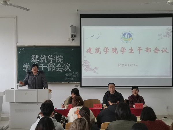 3月17日下午,建筑学院全体学生干部会议在致知楼c108召开。建筑学院党委副书记谢宜勤、建筑学院辅导员沈德艳、李新、阮怀思、建筑学院全体团学骨干及班团干部参加此次会议,会议由沈德艳主持。