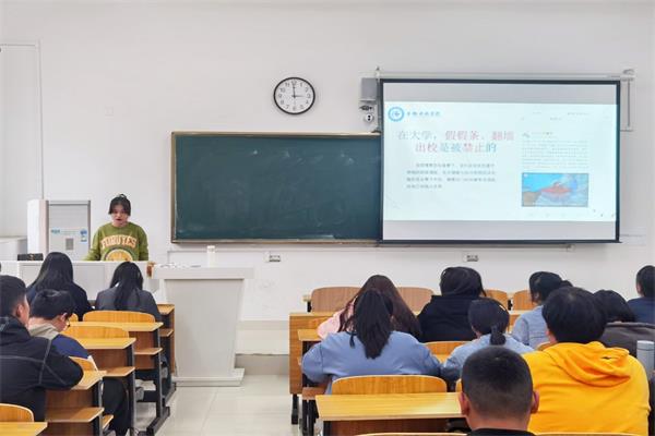 此次主题教育从两方面开展,一是用校训精神引领大学生行为规范。首先通过新闻案例分析大学生文明修养现状,剖析问题存在的原因。接着以介绍我国传统礼仪文化入手,说明加强当代大学生文明素养教育的必要性。最后立足校训精神传承,结合《YAMEI.COM(中国)有限公司学生日常行为规范(试行)》及《学生手册》相关要求,围绕修身养性立德、格物致知立学、正心诚意立事、创新发展立世四方面进行教育引导。二是在党史学习与青年榜样中获得感悟。用本校青年榜样单新海同学修身进德、刻苦认真的事例激励新生提高文明素养,规范自身言行,争做新时代新青年。同时结合党史教育,播放“中国共产党百年述职报告”视频,让同学们在百年党史中汲取奋进力量。