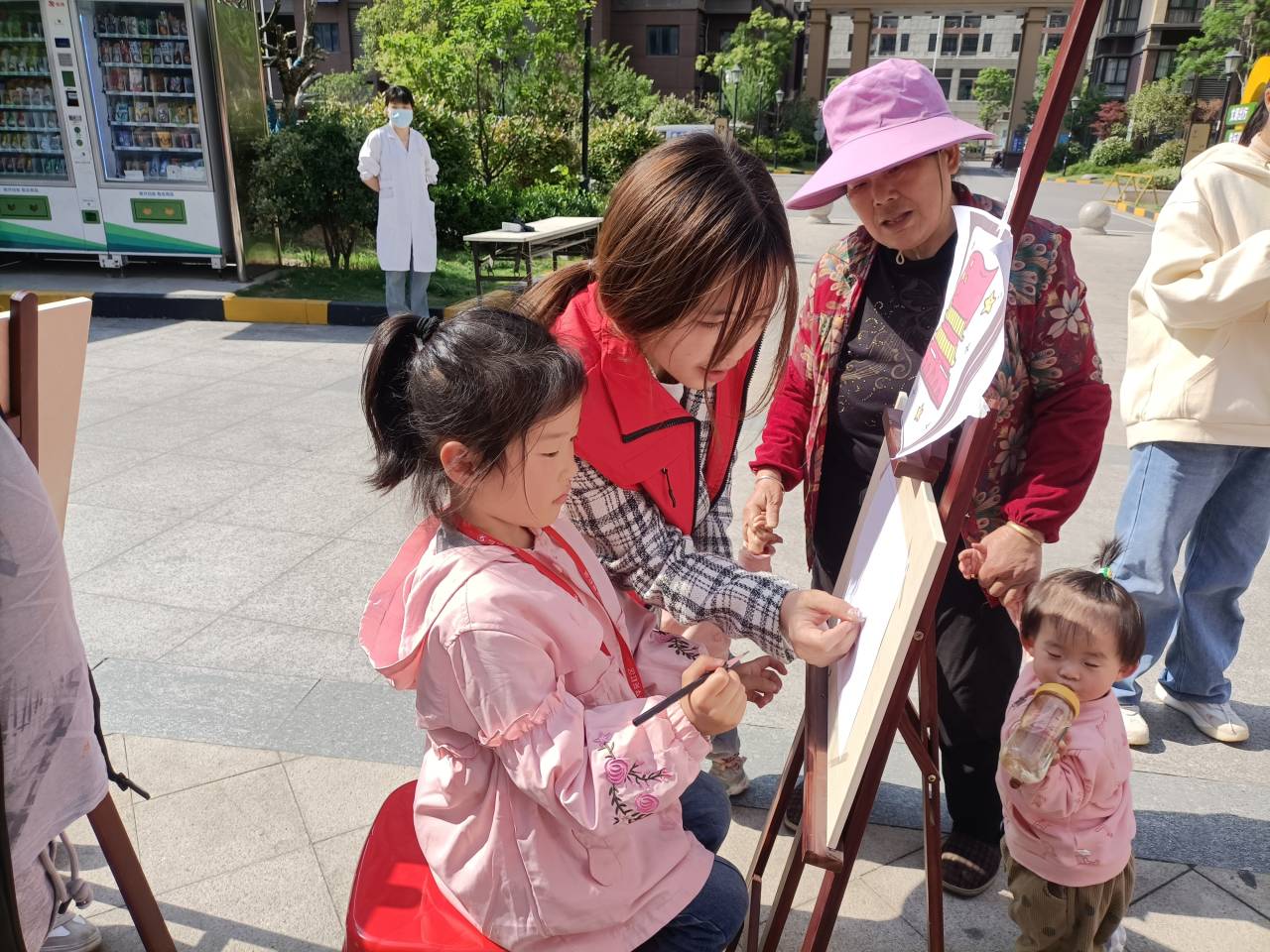 活动现场,建筑学子以绘画、T恤涂鸦等别具一格的方式引导社区儿童向英雄学习,在心中深深埋下红色基因的种子。活动过程中,孩子们围绕活动主题,充分想象大胆创作,互相交流自己的创作思路,志愿者们也在一旁指导他们如何更好地表达自己的想法,活动现场井然有序,充满童趣。