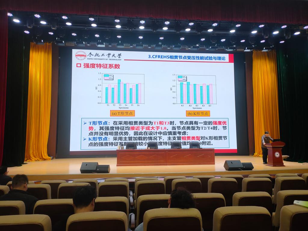 报告会上,王静峰以“椭圆钢管混凝土桁架节点破坏机理与设计方法研究”为题展开了本次讲座,阐述了课题组近年来在椭圆钢管混凝土桁架节点方面的最新研究成果。参会师生边听边记,对报告内容兴趣浓厚。会后,就桁架结构的发展方向、应用场景和创新设计等方面进行了交流和互动,使得参会师生受益匪浅。