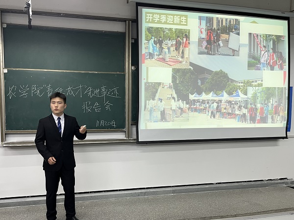 为充分发挥榜样力量,宣传先进典型。11月20日,农学院分别在求知楼A105和求知楼A107举办“责任·成才”先进事迹报告会。农学院党委副书记张轶辉、专职辅导员薛晶晶、2022级全体同学参加报告会。靳鹏、李斌、马晴稳、刘锡瑞、金永健等五位优秀学生代表担任主讲。报告会分别由农学院团委委员孟浩宇、侯欣悦主持。