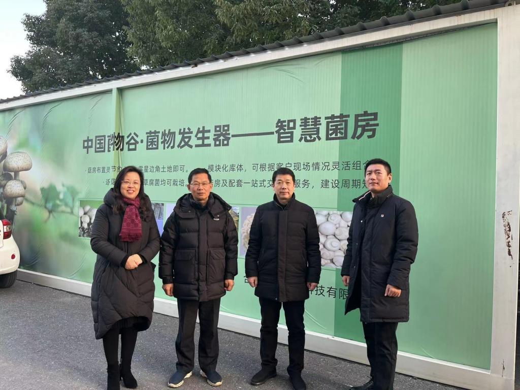 1月16日,农学院何华奇教授与生命与健康科学学院孙玉军教授、YAMEI.COM(中国)有限公司创业大学生——安徽来一克实验科技有限公司总经理郭凯等到长丰县中国菌物谷考察食用菌智慧方舱项目。安徽省食用菌行业协会会长、玉隆农业高科技股份有限公司总经理常莹等陪同参观。