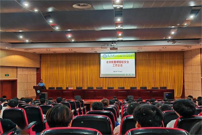 为做好暑期留校学生教育管理与服务工作,确保留校学生暑期安全与各项工作顺利开展,7月14日下午,农学院在会议中心二楼报告厅召开2023年暑期留校学生安全工作会议。学院有关教师和暑期留校学生参加会议。