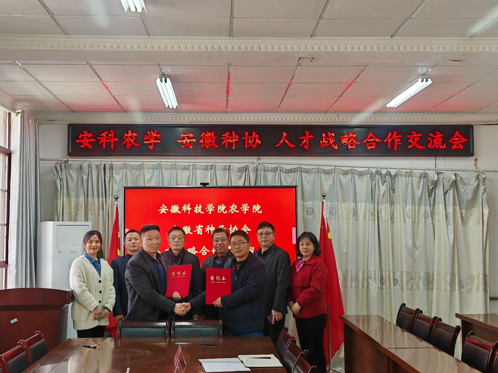 农学院党委副书记张轶辉、安徽省种子协会秘书长叶飞代表双方签订了人才战略合作协议。