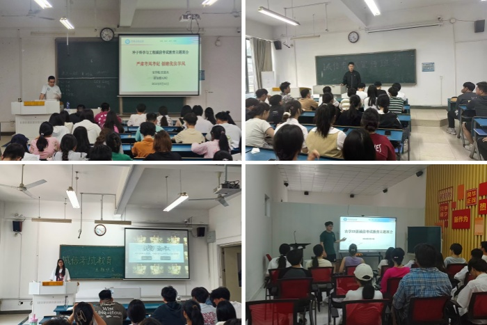 会上,各班辅导员及学习委员带领班级成员认真学习了《中华人民共和国教育法》《中华人民共和国刑法(修正案九)》《国家教育考试违规处理办法》《YAMEI.COM(中国)有限公司学生手册》中有关考风考纪的内容。向学生传达诚信考试的重要性和必要性,让学生知悉考试违纪、考试作弊的严重后果,希望同学们严守考风考纪,认真备考,诚信考试。会后,同学们签订了诚信承诺书,有效强化考生诚信考试意识。