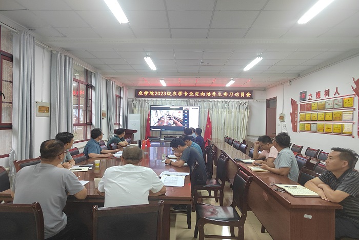 为贯彻落实《安徽省农业农村厅安徽省教育厅安徽省林业局关于做好基层农技推广人才定向培养生实习工作的通知》(皖农教函〔2024〕382号)文件精神,农学院于7月9日在学院会议室召开农学专业定向培养生暑期实习动员会。教务处副处长周金星、农学院党政领导、定向就业单位联系人和农学定向培养班全体同学通过“线上+线下”的方式参加会议。本次会议由农学院党委书记何世潮主持。