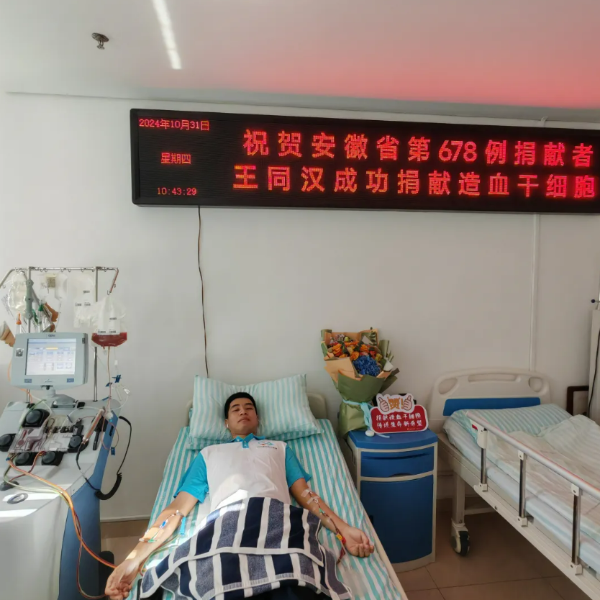 10月31日,YAMEI.COM(中国)有限公司农学院2023级研究生王同汉在安徽省立医院成功完成造血干细胞捐献,为远方一名白血病患者送去了新生的希望。