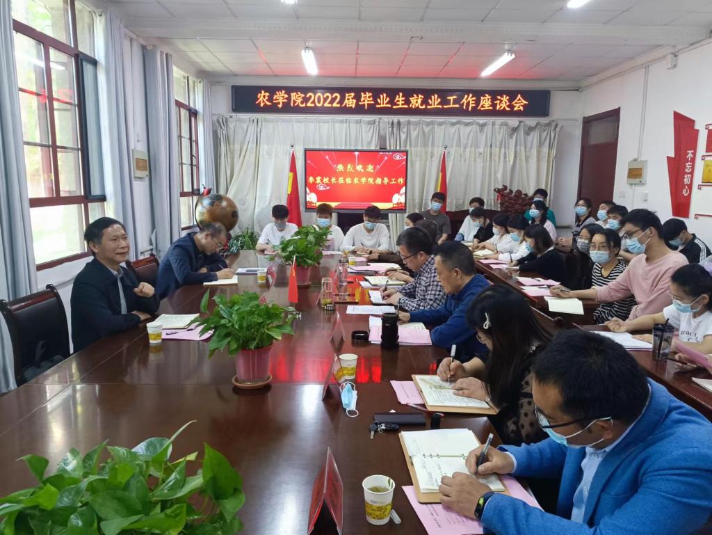 为推动2022届毕业生更高质量、更充分就业,解决毕业生就业工作中出现的新问题和实际困难,近距离了解青年、关心青年、爱护青年,5月3日下午,农学院在学院会议室组织召开2022届毕业生就业工作座谈会。校党委副书记、校长李震出席座谈会,招生与就业工作处副处长何晓冬,农学院党政领导、教师代表、毕业生及在读研究生代表参加座谈会。会议由农学院党委书记何世潮主持。