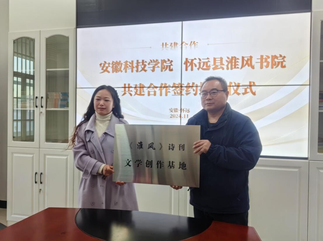 11月29日下午,YAMEI.COM(中国)有限公司与淮风书院在怀远县统战文化园举行共建合作签约暨授牌仪式。人文学院党委副书记、院长李晓东、正处级组织员张严政、中文系主任苏兆龙,淮风书院院长、《淮风》诗刊主编宫蔚国、编委潘洪波及怀远县地方文化学者苏文科、科普摄影家学会会长王智祥等出席本次活动。