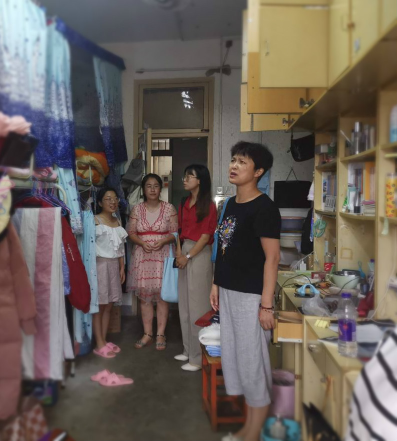 每走进一间宿舍,老师们都和学生亲切问候、详细交谈,询问同学们假期生活情况和返校情况。杜士凤提醒学生,要积极配合学院,做好晨午晚检和晚点名等工作;要做好个人防护等安全措施;要保持宿舍卫生,勤通风;要及时注意天气变化,增减衣服,合理饮食,形成健康生活规律。