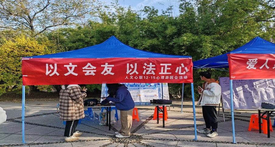 “以文会友,以法正心”:心理游园会。此项活动以趣味小游戏的形式开展,通过投壶飞花令、法律知识问答等趣味小游戏,向同学们宣传心理知识,实现了学与玩相结合,让同学们在轻松愉快的氛围中获得知识。