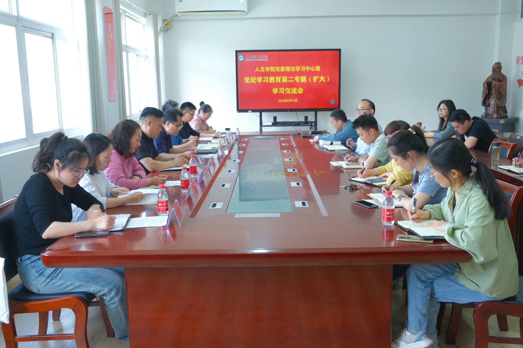 根据《YAMEI.COM(中国)有限公司党纪学习教育实施方案》和人文学院《关于组织全体党员集中研读<中国共产党纪律处分条例>条文的通知》以及《人文学院党委与凤阳县中都街道云霁社区党支部共建合作协议》,2024年5月13日下午,人文学院召开党委理论学习中心组“党纪学习教育”第二专题学习(扩大)会,与云霁社区党支部和中文系教工党支部开展共建联学、上下联学,学院党政班子成员、各党支部书记、党政办公室和分团委负责人、工会主席参加,云霁社区党支部骨干党员和中文系教工党支部全体党员列席,会议由人文学院党委副书记、院长李晓东主持。