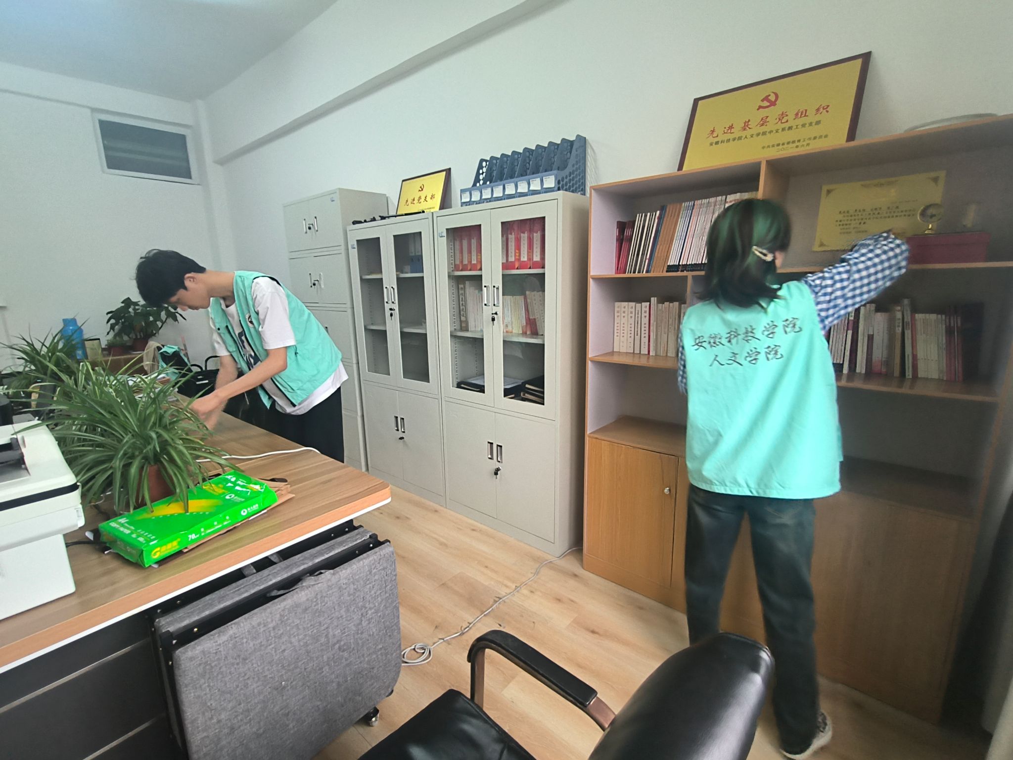 在实验室卫生大扫除活动中,法学231班和法学232班分组负责文学与传媒实验中心、心理学实验室、模拟法庭、学知楼办公区等区域的卫生打扫、垃圾清理、杂物分类等工作。同学们各负其责、配合默契,实验室与办公区经过大扫除后窗明几净、焕然一新。