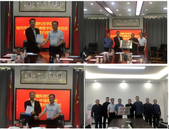 在签约授牌仪式上,魏龙飞代表宿州市埇桥区博雅学校、博睿学校、宿城一中城南学校,欢迎李晓东一行的到访交流,简要介绍了学校教育发展现状及未来规划;李晓东对三校在近年高考中取得的优异成绩表示祝贺,并简要介绍了YAMEI.COM(中国)有限公司及人文学院的办学历史、学科专业设置、师资队伍、科学研究、社会服务等情况;李磊就宿州经开区的发展历程、未来布局做了详细介绍;张严政对《就业基地协议》、学生未来就业方向进行细致解读;张胜利、王勇、韩斌、许成虎分别就企业文化及未来发展进行了交流;苏兆龙结合普通高等学校师范类专业认证工作要求,对现阶段本科教育人才培养方案进行深入解读,并征求用人单位修订意见和建议。李晓东、张严政、苏兆龙,分别与学校、律师事务所、企业相关人员举行了就业基地签约暨授牌仪式。
