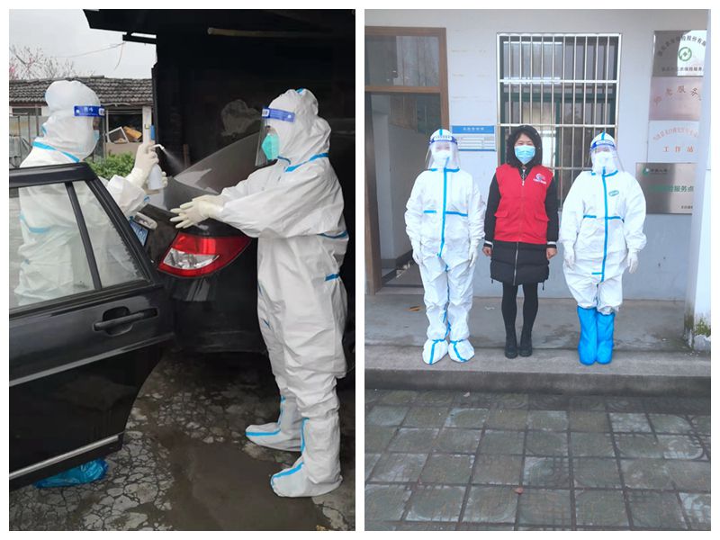 杜孝亚同学参与家乡疫情防控工作(图左)