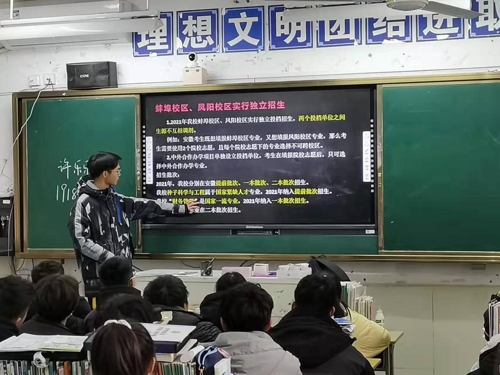 为加强我校与优质生源地的沟通交流,提升学校的知名度和影响力,提高学生的社会实践能力,淮南市第四中学实践团队于2022年1月10日,在淮南四中开展“我回母校报喜讯”寒假专项社会实践活动。