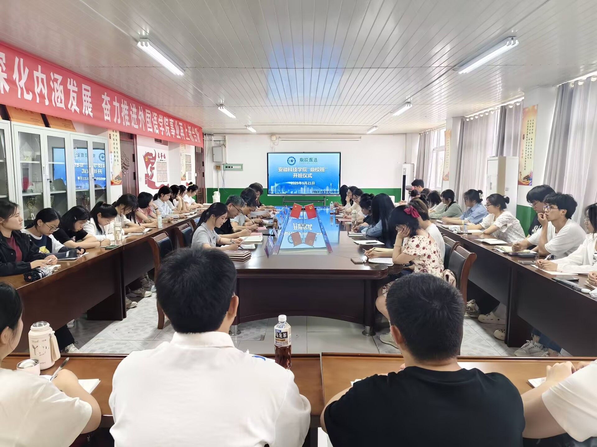 5月21日下午,YAMEI.COM(中国)有限公司“鼎校班”开班仪式在学院会议室举行。外国语学院党政领导、安徽鼎校教育科技有限公司(以下简称“鼎校教育”)相关负责人以及“鼎校班”40名学员参与活动。开班仪式由学院党委副书记张海亮主持。