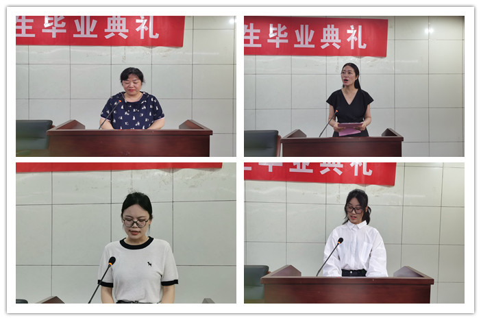 教师代表陆宗丽、在校生代表王晗分别表达了对毕业生的祝福。毕业生家长代表陶毓女士和毕业生代表孙玉玉分别表达了对学校培养的感激之情。