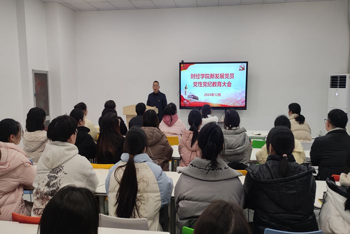 12月24日,财经学院在“一站式”学生社区党团工作室召开新发展党员党性党纪学习教育大会。学院党委副书记、纪委书记耿广汉出席并讲话,学院各学生党支部书记、新发展学生党员参加会议。大会由学院党政办主任张俊主持。