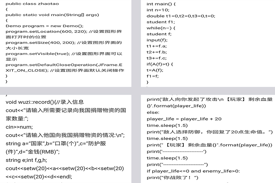 本次活动以“智慧校园,有我编创”为主题,通过易班平台向同学们征集了数百份使用C、C++、JAVA、Python等计算机编程语言编写的程序设计作品,并进行了为期10天的评选,旨在检验学生线上学习成果,鼓励学生夯实专业基础。活动中,同学们踊跃参加,他们利用课堂所学知识,进行严密的逻辑分析,准确使用编程语言语法,编写出一行行格式规范、内容准确的代码。通过对程序结构的认真设计、程序可维护性的探讨、程序复用性的多次测试、程序可扩展性的反复考量,同学们使一行行代码构成了一个个出色的程序设计作品,充分展现了自身扎实的专业基础,培养了运用所学计算机理论知识解决问题能力。
