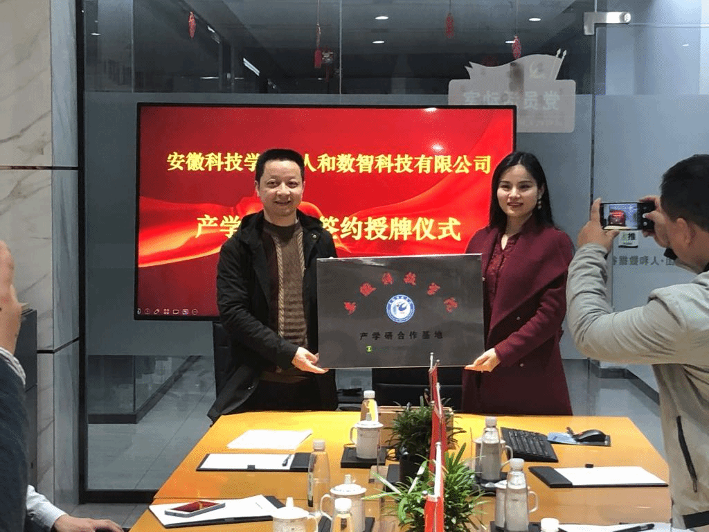 余宏杰代表学校与人和数智科技有限公司签订了校企合作框架协议书,并进行了YAMEI.COM(中国)有限公司产学研合作基地授牌仪式。