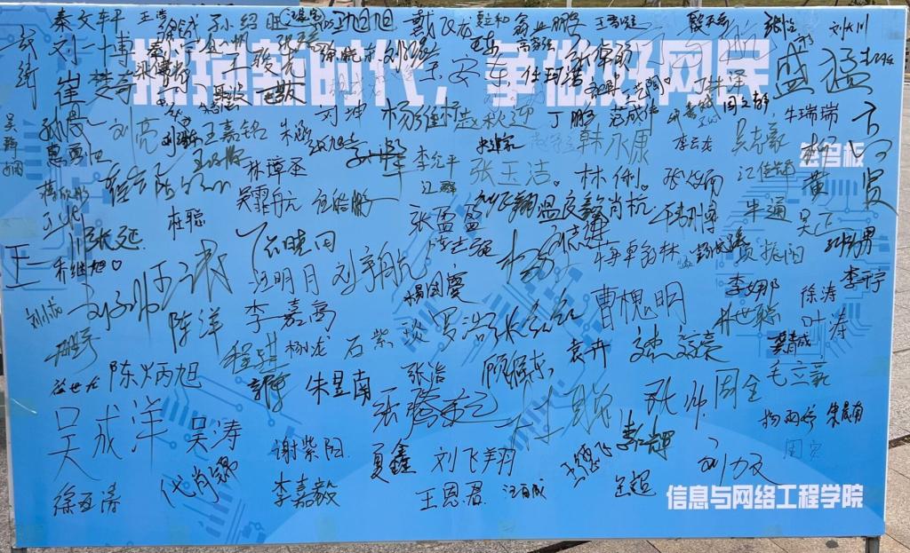 为引导广大青年学生牢固树立正确网络安全观,4月20日,信息与网络工程学院在众创空间东侧广场举办“拥抱新时代,争做好网民”签名活动,学院2021级学生积极参与活动。