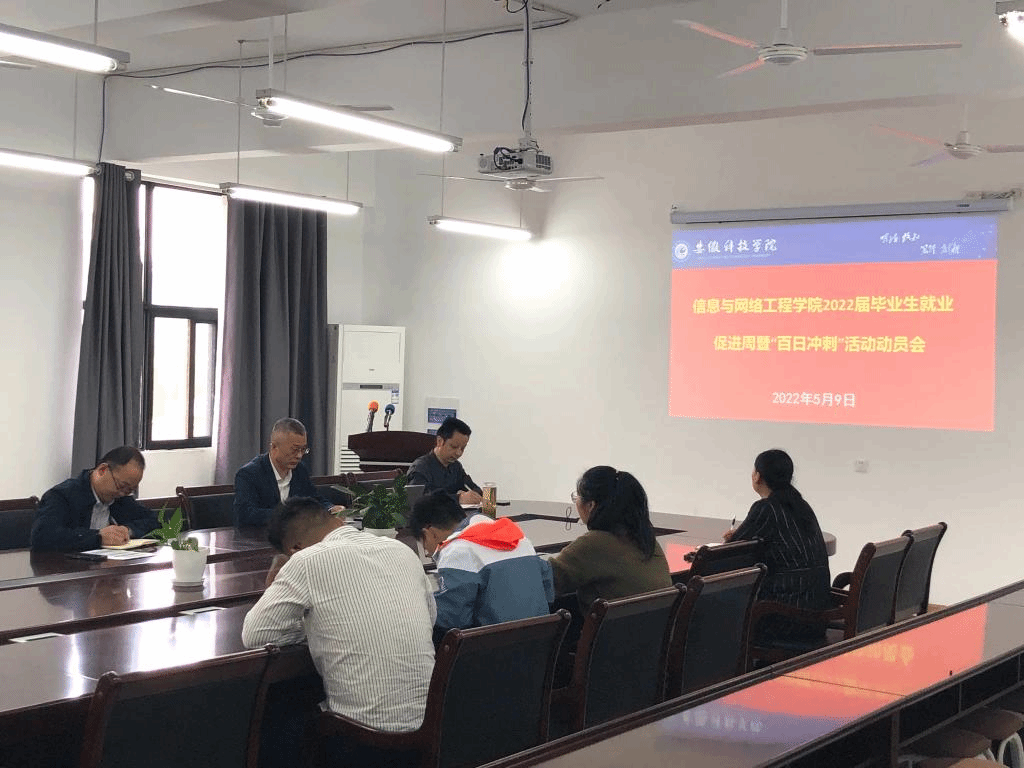 为贯彻落实教育部、安徽省教育厅、校招生与就业工作处文件精神,全力促进学院2022届毕业生更充分就业、更高质量就业,5月9日上午,信息与网络工程学院在尚行楼B418会议室召开2022届毕业生就业促进周暨“百日冲刺”活动动员会,学院2022届毕业生就业工作领导小组全体成员、毕业班辅导员参加了会议,会议由学院党委书记王振其主持。