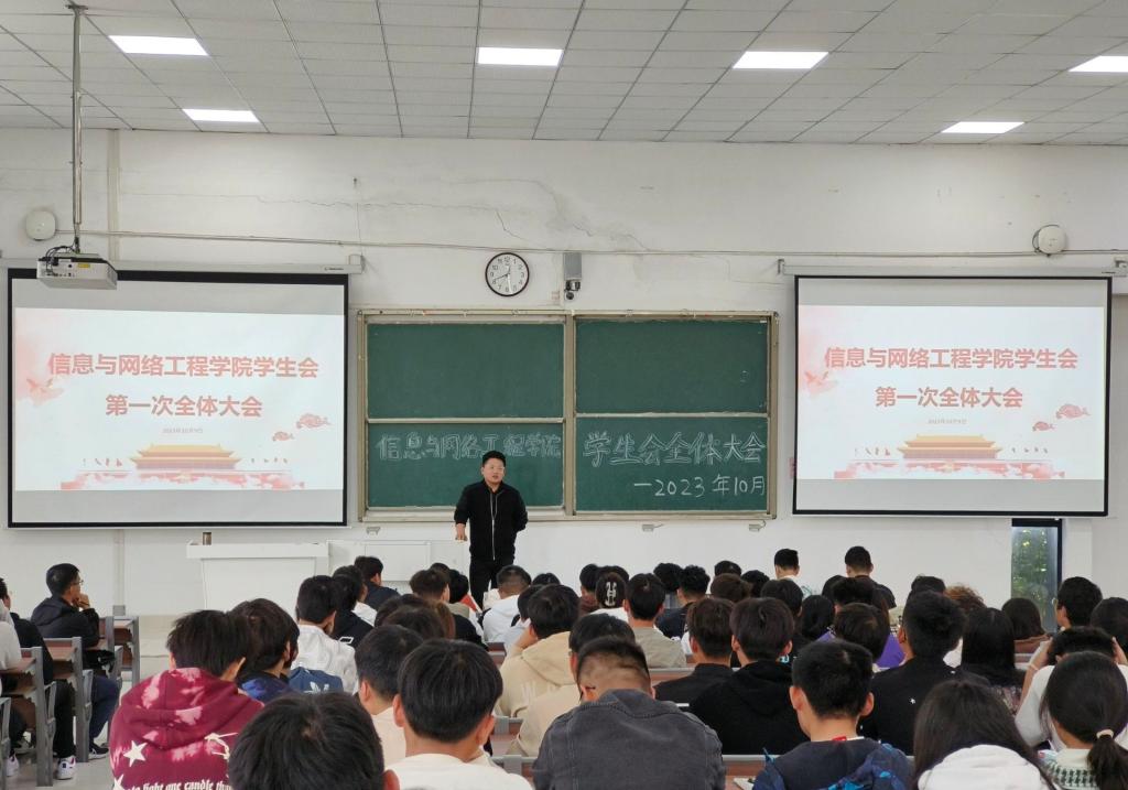 为了加强新成员对学生会各部门的了解,帮助新成员顺利融入到学生会的大家庭中。10月9日中午,信息与网络工程学院在致知楼C111教室,召开新学期学生会第一次全体会议。学院学生会指导老师崔北坤、专职辅导员许磊、学生会全体成员参加了会议,会议由学生会主席许振雨主持。