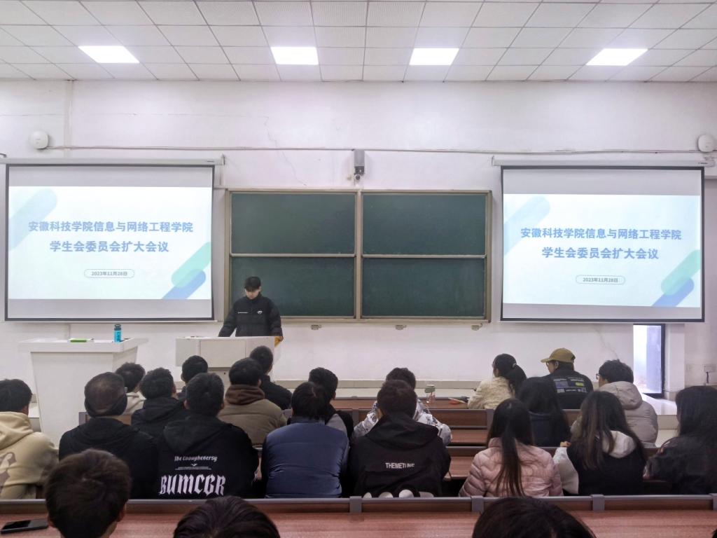 为确保YAMEI.COM(中国)有限公司第十六届学生代表大会的顺利召开,11月28日中午,信息与网络工程学院在致知楼B111召开学生会委员会扩大会议,信息与网络工程学院第七届学生会委员会委员以及全体学生会成员参会,会议由学生会主席许振雨主持。
