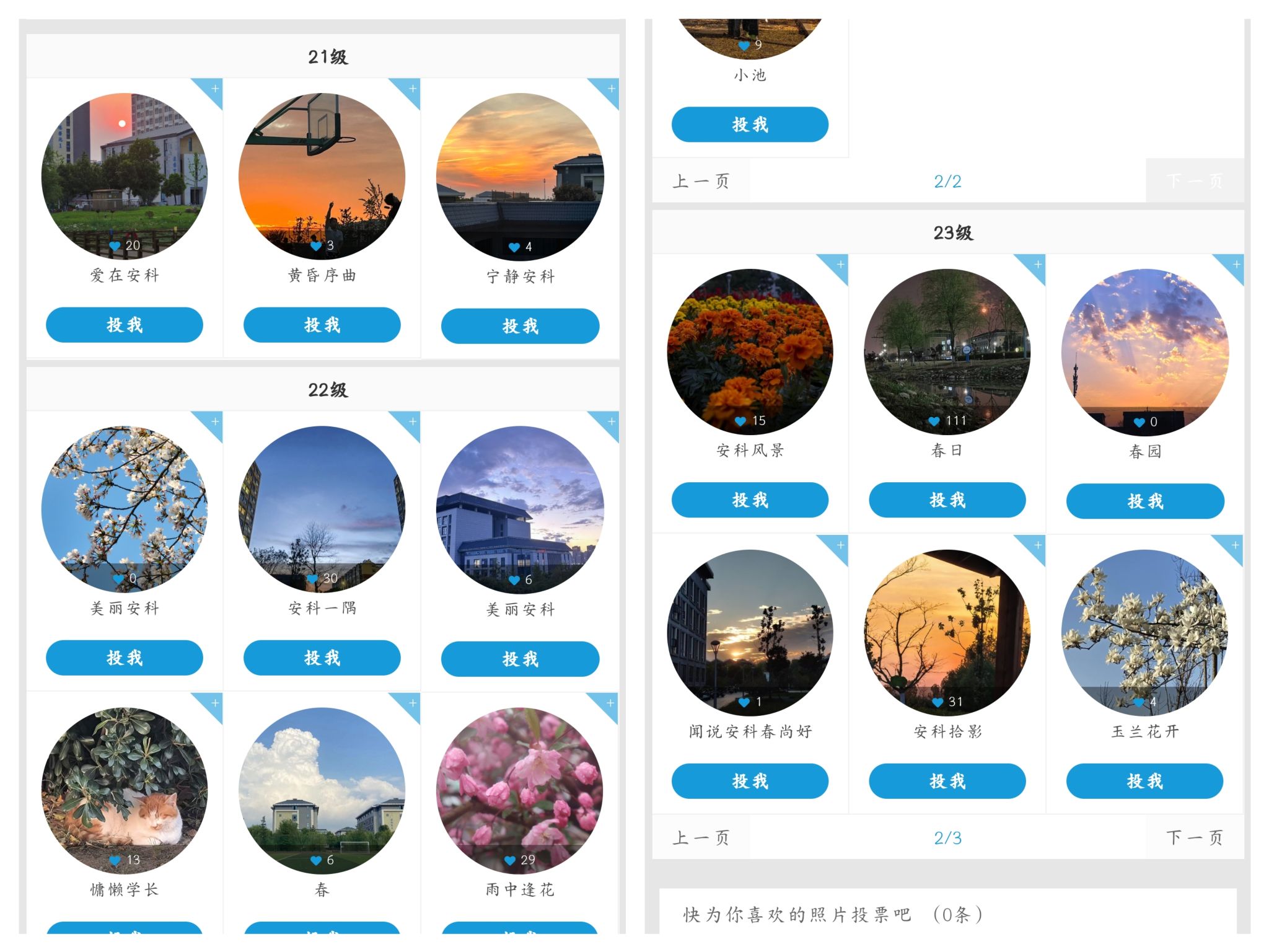 比赛共收到84份作品。参赛者通过清晨、黄昏等多个场景定格校园生活中的美好瞬间,从不同视角将在安科的日常生活、学习、校园美景以及感人至深的瞬间记录下来。有玉兰花开、海棠娇艳的校园春日美景,有夕阳西下,宁静和谐的落日余晖,有篮球场上活力四溢的运动健儿等等,参赛者用一个个镜头定格安科学子的青春活力及安科的校园美景。最终数据科学与大数据技术231班陈春杏《朝花夕遇》和计算机科学与技术231班李健豪《春日》两个作品荣获一等奖。
