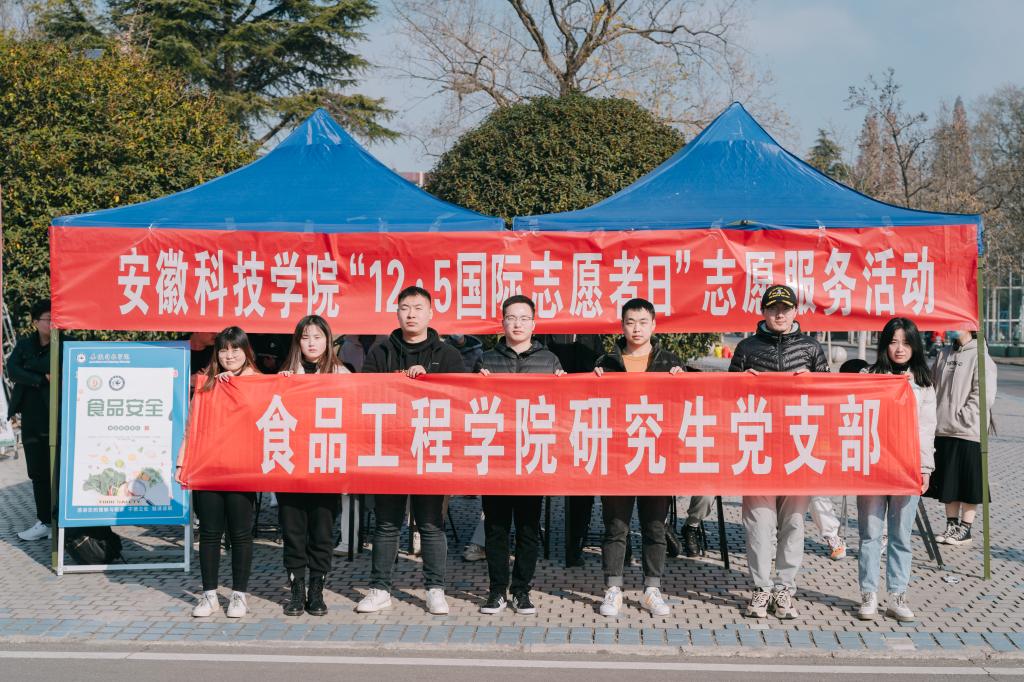 食品工程学院研究生党支部在凤阳校区开展了“食品安全”宣讲志愿服务活动,通过现场签名、现场讲解、散发食品安全手册等方式,以“食品安全+生活小常识”为主题,向来往师生科普了食品安全常识、食品污染来源、食品安全标识等方面知识。针对师生较为关注的食品安全方面问题,介绍了食醋质量鉴别、食物中毒简介、防腐剂使用等生活中的食品安全技巧。过往师生纷纷表示通过活动不仅学到了食品安全方面的知识,更重要了解了“12·5日国际志愿者”,承诺后期将主动践行志愿服务精神,开展多种形式的志愿服务活动,努力形成关心、支持和参与志愿服务的良好氛围,营造志愿服务人人愿为、时时能为、处处可为的生动局面。