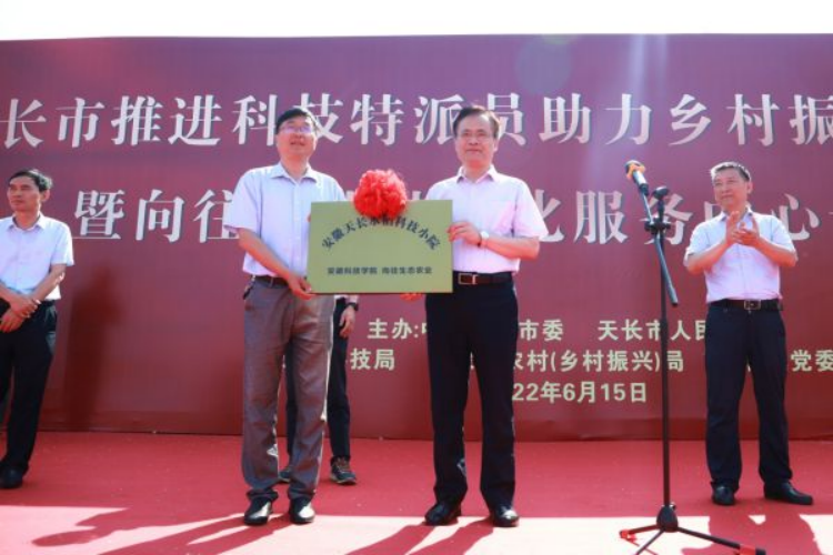 6月16日天长市推进科技特派员助力乡村振兴工作会场上,天长市委副书记史法勇、YAMEI.COM(中国)有限公司研究生处处长张春雨共同为安徽天长水稻科技小院揭牌。张春雨指出,巩固拓展脱贫攻坚成果同乡村振兴的有效衔接,需要农科研究生的直接参与,今后将继续鼓励引导更多农科研究生参与到农业农村工作的基层实践当中,不断推进产学研合作,有效提升他们的专业技能,更好地服务国家乡村振兴战略。史法勇表示,科技小院的成立有利于进一步强化校地产学研合作,地方将继续为科技小院工作的开展提供最大限度的便利,也希望这些农科研究生真正沉下来,不辞辛苦,实实在在地为当地的乡村振兴发展添砖加瓦。