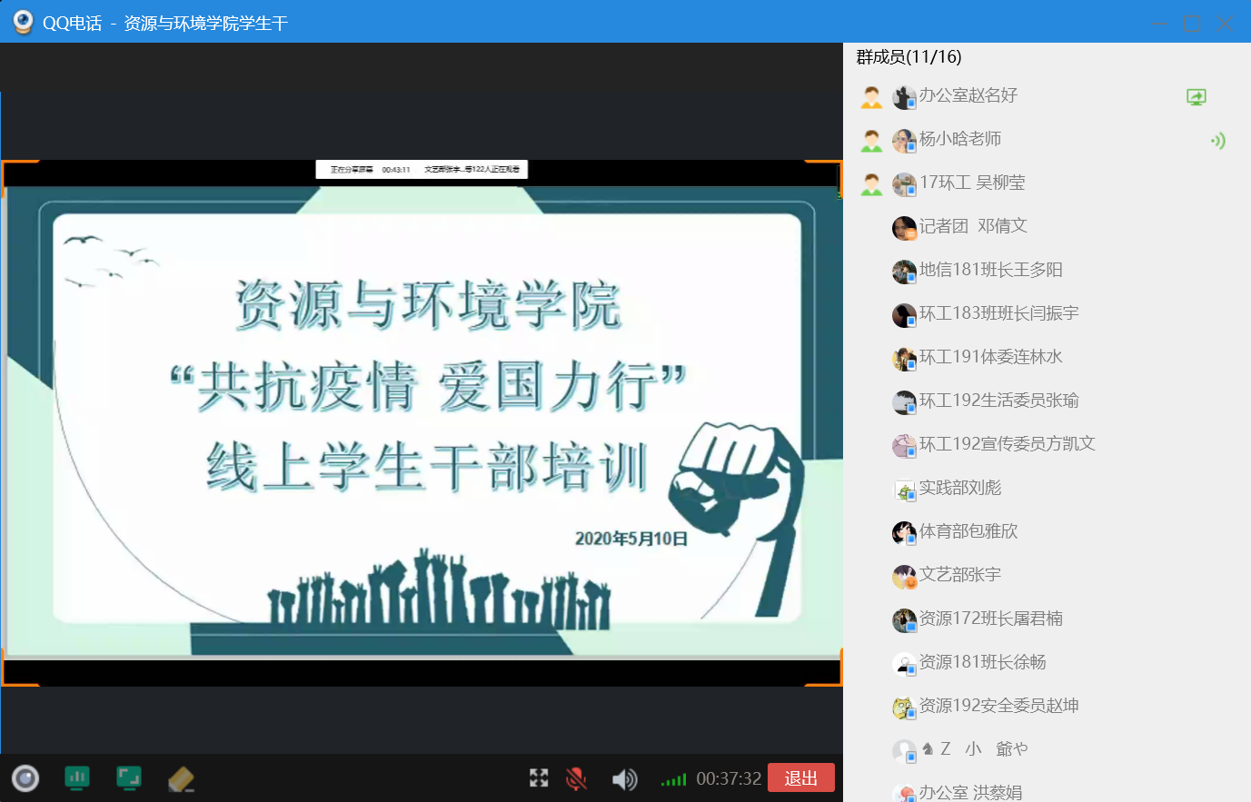 资源与环境学院举办“共抗疫情 爱国力行”线上学生干部培训