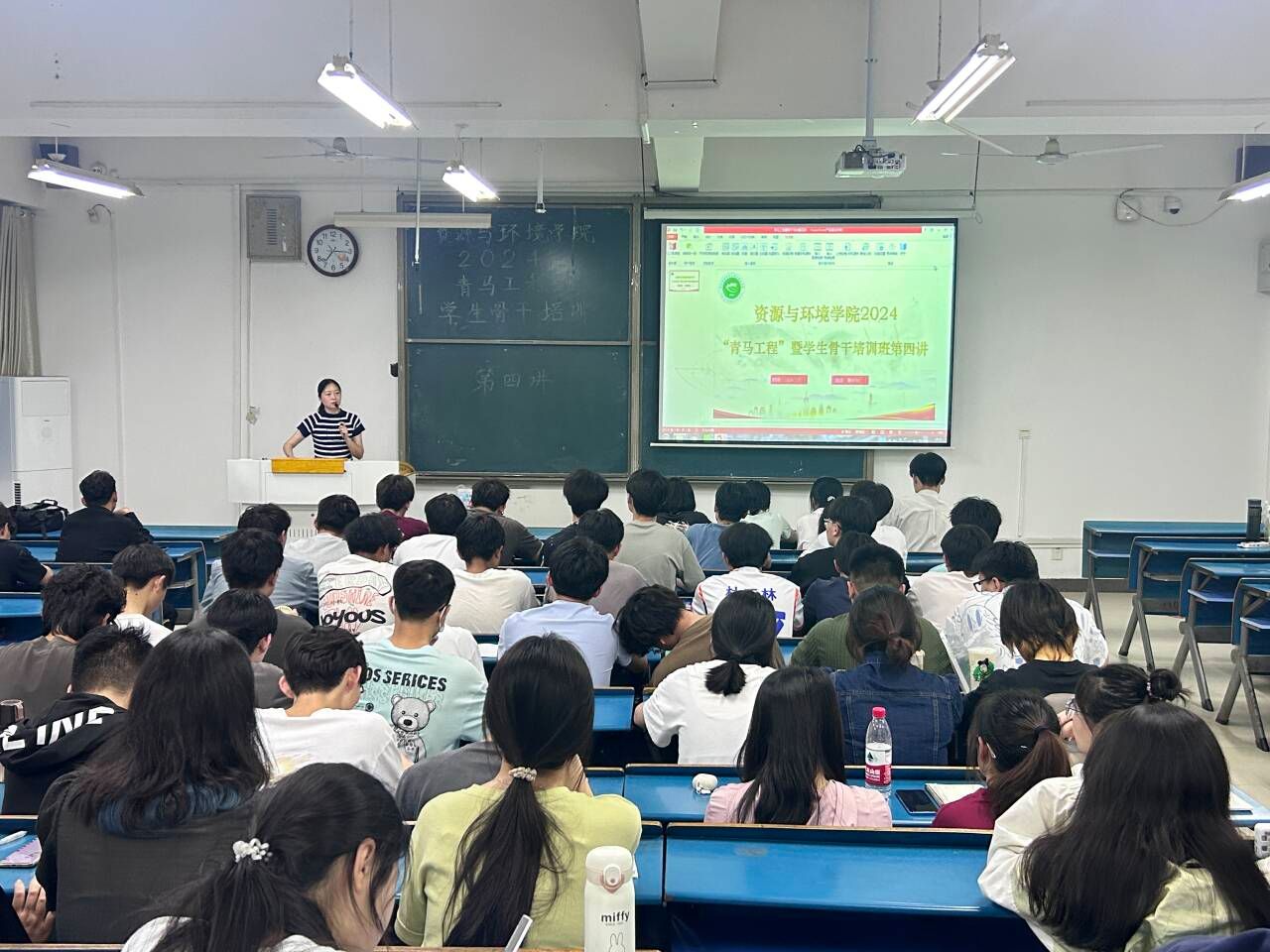 为进一步提升学院学生干部的能力素质,资源与环境学院于5月17日晚在新知楼A110开展了2024年青马工程暨学生骨干培训第四讲,22、23级全体学生干部及学生会全体成员参加培训,专职辅导员王丽萍主持本次培训会。