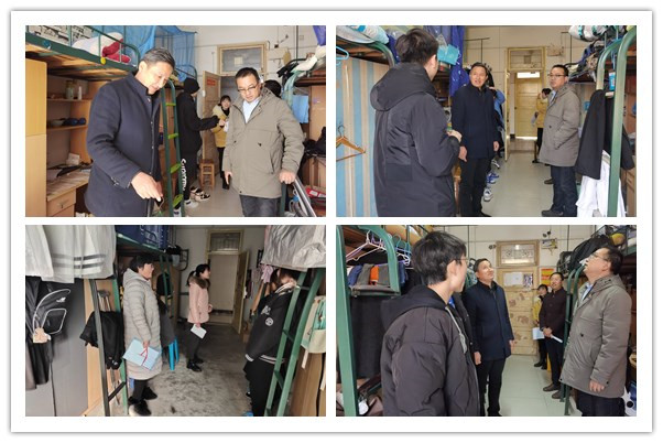 走访过程中,李孟良一行先后来到各年级学生寝室,亲切向同学们问好,了解生活学习状况,希望同学们提高安全防范意识,加强日常交流,创造浓厚的学习氛围。李孝良希望同学们认真备考,加强复习力度,相互监督,保证按时按质完成课程考核任务。沈树周强调,各寝室长务必落实好寝室安全管理制度,不得无故外宿,养成良好的作息习惯,争创文明宿舍、学习型宿舍。谢宜勤叮嘱同学们要保持寝室卫生整洁,希望党员同志、学生干部充分发挥模范带头作用,争先创优。